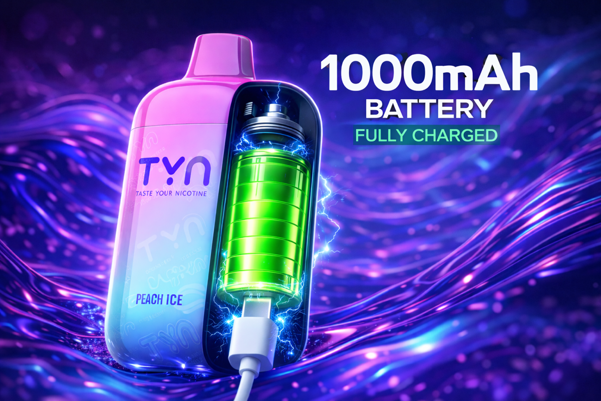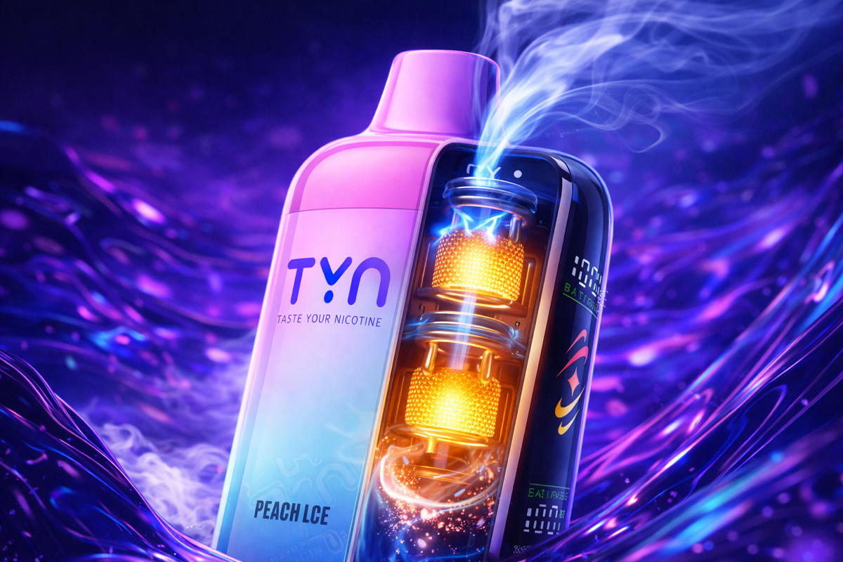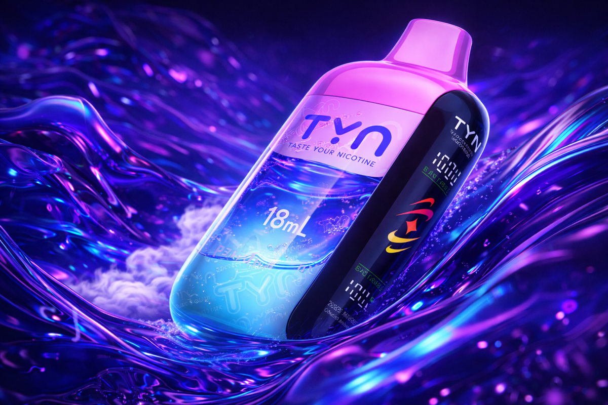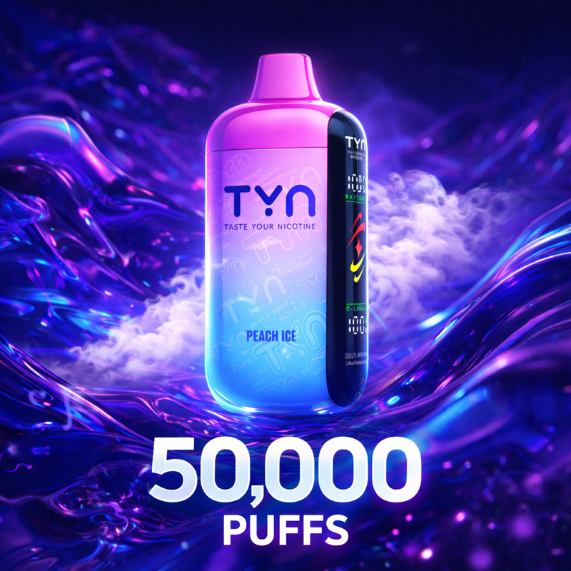 Try the Cool Mint TYN 50k by the TYN brand today! This disposable vape device has an impressive 50,000 Puff count, filled with 18mL of premiuim e-liquid, powered by a 1000mAh battery. Other notable features include a HD Intelligent Display Screen with Battery & E-liquid Monitoring, and delivers a 5% (50mg) nicotine strength puff with every inhale.